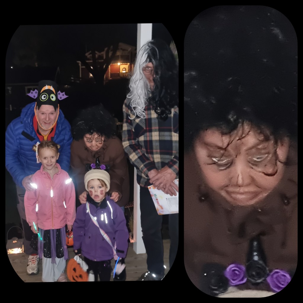 Vi körde också Bus eller Godis för första gången i Kyrkbyn, ungarna fick bjuda sina kompisar på ”skräckkväll” hemma hos oss. Alla kom utklädda, vi hade lagt filtar på golvet i köket där vi satt tillsammans och berättade spökhistorier samt åt ”äckliga godisar”. När vi sedan skulle gå runt byn så hade jag förvarnat ett gäng grannar vad som skulle hända under kvällen, så dom var redo med godis till barnen, alla förutom Leffe, han öppnade dörren och ropade -” Busa på ni bara!”. Det gjorde dom verkligen, ungarna kutade runt och skrek, bankade på dörren och fönster så det stod härliga till. Tyvärr retade de upp jakthundarna som bodde i hundgårdar och en annan granne öppnade dörren och skrek att vi måste sluta upp med denna idioti 👻🎃🙀