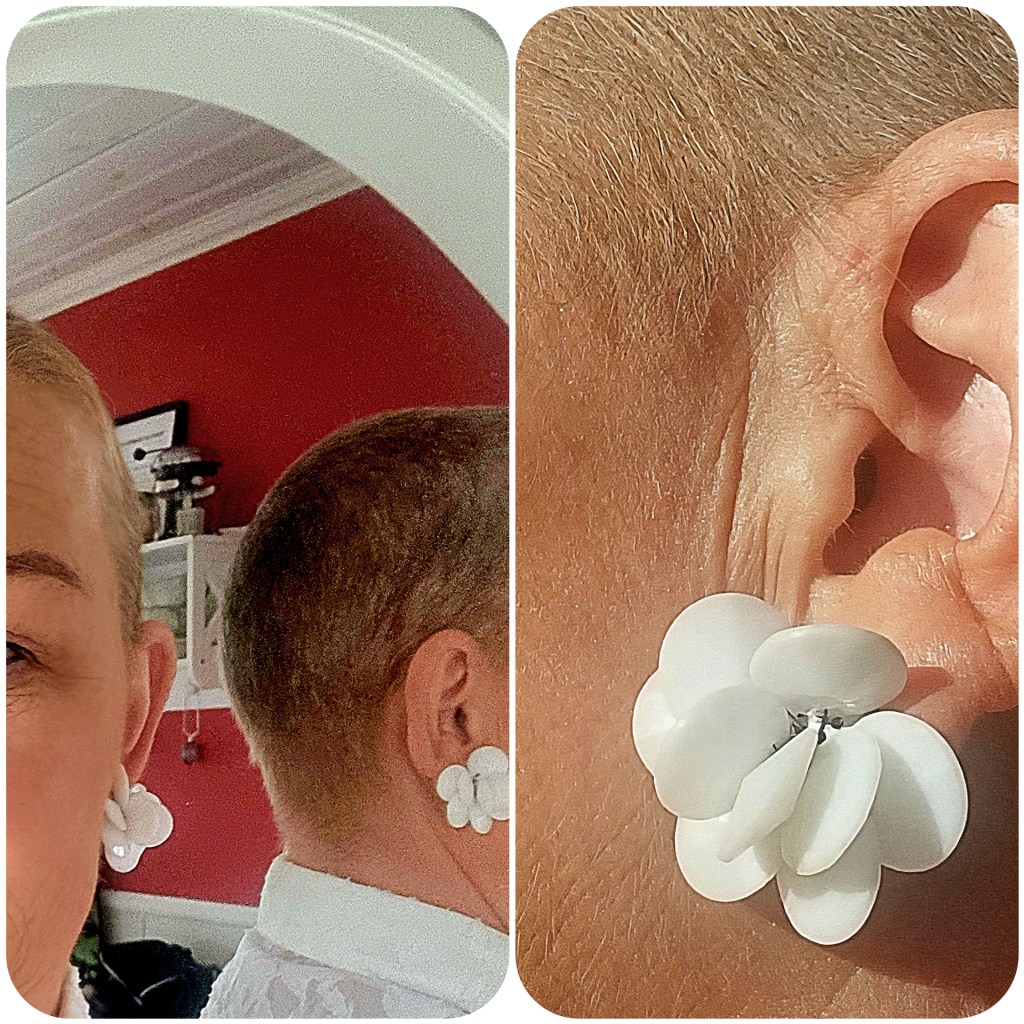 Min egna lilla utmaning att byta örhängen varje dag fullföljdes och tack vare bästa Kicki så blev det till att tuffa till sig på måndagen som var Kickis tur att köra mig till Gävle. När hon kom och hämtade mig tidigt på morgonen så hade hon letat i gömmorna efter en samling örhängen av modell äldre. Gissar att de jag till slut valde nog var i min egen ålder, rätt så läckra om jag får säga det själv.