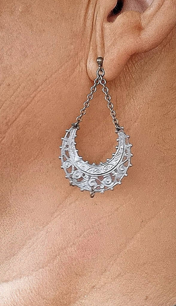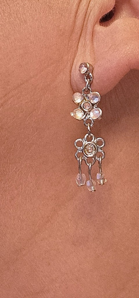 Min egna lilla utmaning att byta örhängen varje dag fullföljdes och tack vare bästa Kicki så blev det till att tuffa till sig på måndagen som var Kickis tur att köra mig till Gävle. När hon kom och hämtade mig tidigt på morgonen så hade hon letat i gömmorna efter en samling örhängen av modell äldre. Gissar att de jag till slut valde nog var i min egen ålder, rätt så läckra om jag får säga det själv.