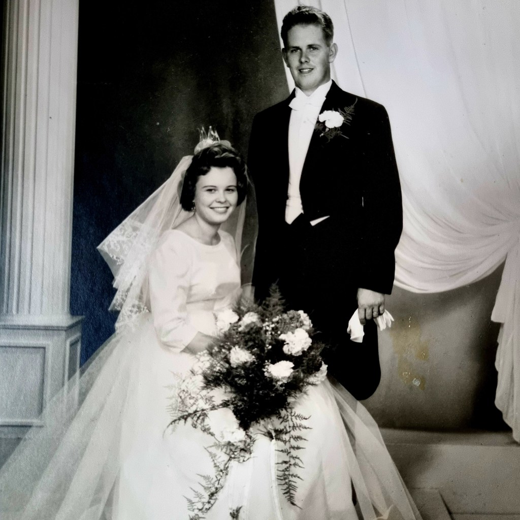 När man får cancer och allt vad det innebär så skulle man vilja ha sina friska föräldrar kvar i livet. Vår mamma och pappa avled för några år sedan och deras sista år i livet väljer jag att inte tänka på. Jag skulle vilja låna tillbaka dom en stund när allt var bra och bollat alla dessa röriga tankar med dom, känt deras stöd och frågat dom alla outtalade frågor. Vår uppväxt var i stort sett bra, vi hade två arbetsamma föräldrar, dom uppfostrade oss väl, hade humor OCH humör, i varje fall mamma. Jag inser nu vad dom fick slita för att få vardagen att gå ihop, skiftjobb, eget företag, alla möjliga olika småjobb som pappa fyllde ut ledigheten med. Dom blev aldrig välbärgade trots allt slit, pappa som redan som ung var en driftig entreprenör var arbetsam men inte någon ekonom och mamma var den som höll i ekonomin hemma för att få livet att fungera. När vi plockade i mammas saker efter hennes bortgång hittade vi deras bröllopsvisa som någon totat ihop och när jag nu läser verserna så kan man se att någon siat om framtiden och hittat deras personligheter och träffat rätt i en hel del.