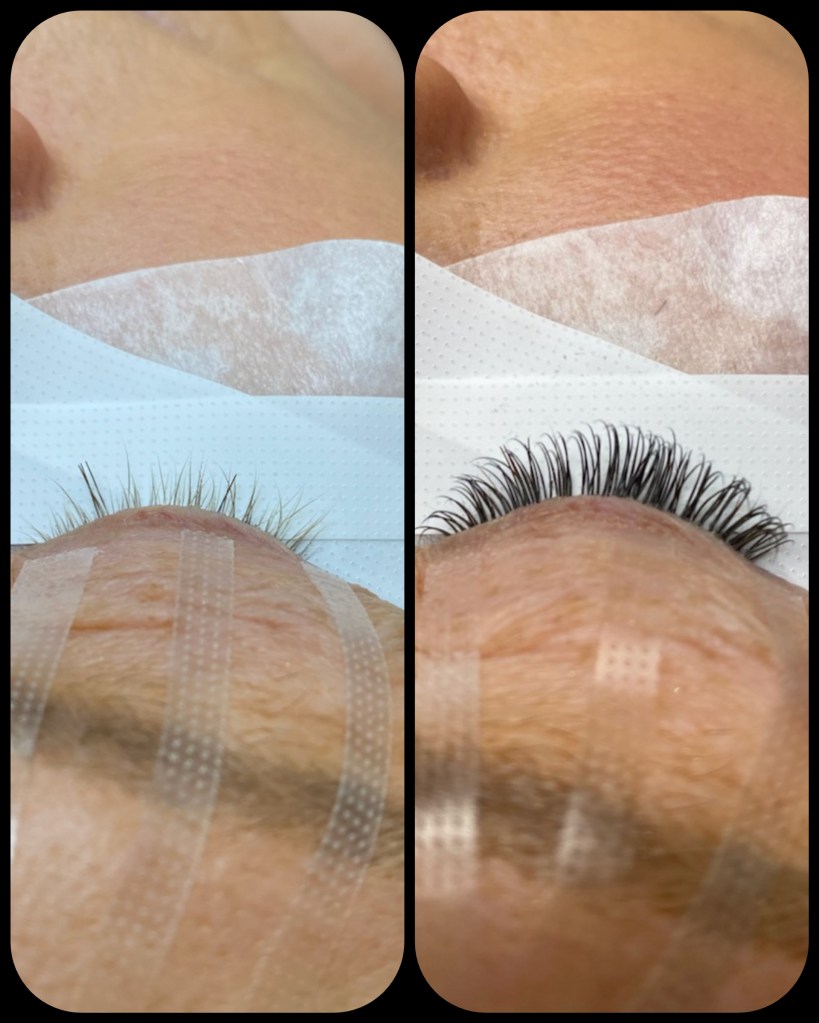 Så då var det dags för min sista punkt för idag, ögonfransar. Även dessa valde att till stor del trilla bort och jag vande mig snabbt att vara utan dessa, använde istället en ögonpenna för att åtminstone rama in dom. När fransarna verkade vara på väg tillbaka och jag började försöka måla dom igen så såg jag ut som på den tiden när jag använde mammas kakmascara, dom liksom krullade ihop sig och blev till världens dagenefterorkadeintesminkaavmig fransar. Med andra ord gav jag snabbt upp detta. Så träffade jag Nettan, en av mina BC-kompisar på sjukhuset, vi tog en fika tillsammans och pratade om allt möjligt. När jag sedan ser att hon fått tillbaka så fina fransar och berömmer dom så får jag då reda på att hon valt att förlänga dom. Det såg helt naturligt ut och jag funderade i två dagar sedan bokade jag en tid hos samma tjej här i Hudik. Victoria på Style It tog hand om mitt problem och jag blev så nöjd. Det var så lugnt och skönt så att jag nästan somnade under hennes mjuka händer. Tack och lov tog hon en före och efter bild, inte tänkte jag på det och här är resultatet.