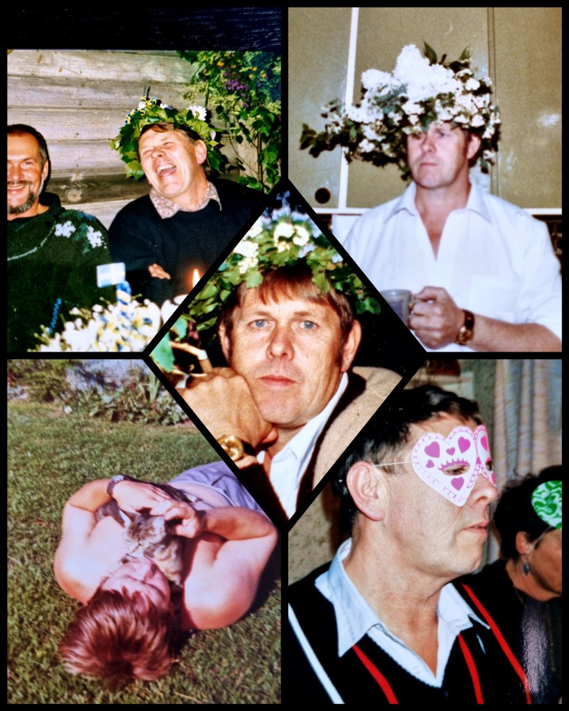 Pappas intresse för att göra affärer tog aldrig slut, ej heller tanken på att man inte skulle jobba hur sjuk, trött eller hur ont man hade. Han hade problem från 40-årsåldern med sina höftleder och då han äntligen blev tillräckligt gammal och fick byta ut en av dom så blev livet lite bättre. Dock misskötte han sin rehabilitering och efter några år var det dags igen. En höst när han som vanligt höll på med bärinköpen så ringde han och bad mig komma ner och hjälpa honom, då hade han så vansinnigt ont och vi fick till slut iväg honom till läkaren. Då konstaterades det att hans protes gått isär i lårbenet, likafullt hade han bubbat bärlådor en hel dag innan han kapitulerade. Många tyckte om pappa, han hade alltid ett gott humör och ett skämt på väg ut, han visslade hela dagarna och var alltid igång. Om jag får plocka de goda egenskaperna till min fördel så tror jag att jag fått min positiva sida av honom, likaså visslandet och envisheten när det gäller att jobba trots att man mår som en liten kattskit. Det var först när cancern gjorde intrång som jag valde att kapitulera, dock har det inte varit så smärtsamt som ett trasigt lårben. Jag var pappas flicka, inte tu tal om det. Mamma nämnde någon gång att han gärna ville ha en som, när det då inte blev så fick jag duga. Om pappa hade haft sinne för ekonomi, inte varit så lättlurad, inte hoppat i så många galna tunnor och inte blivit egen företagare så hade han nog haft ett annat liv. Detta kände jag med mig själv efter att ha försökt drivit Trägårn i några år, jag är ingen entreprenör, men jag är en jäkel på att jobba. Hans motton i livet var: ”Man ska jobba sig frisk och semester är en sjukdom” Detta var hans försvar för att aldrig vara ledig, tyvärr hade det med ekonomin att göra, men han sa det gärna för att på något vis släta över att det blev som det blev. Han var en toppenpappa trots sina brister.
